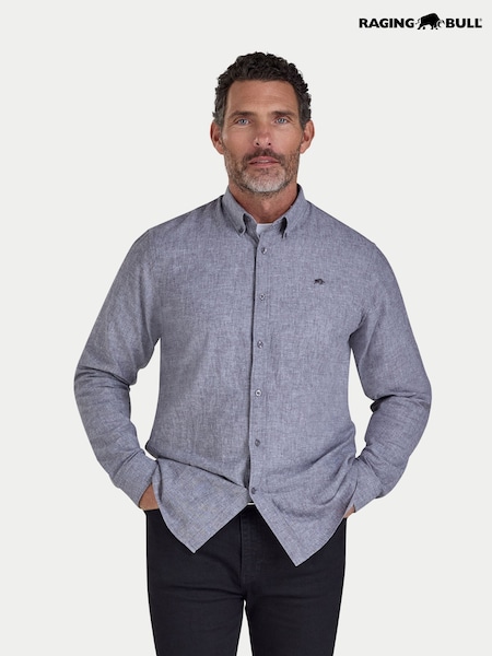 Raging Bull Long Sleeve Classic Linen Grey Shirt