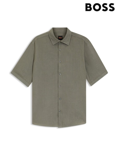 BOSS Grey Regular Fit Short Sleeve Linen Shirt