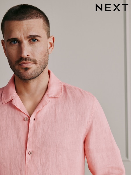 Joules Pink 100% Linen Long Sleeve Classic Fit Shirt