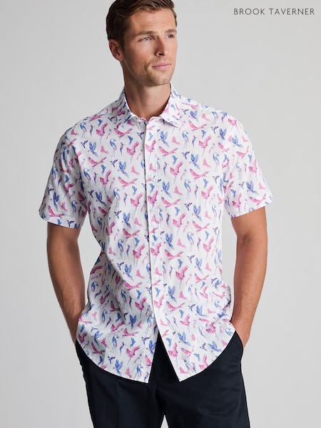 Light Pink Bird Conversational Regular Fit Short Sleeve Shirt