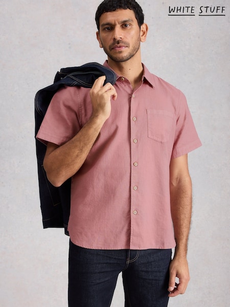 White Stuff Pink Ely Linen Short Sleeve Shirt