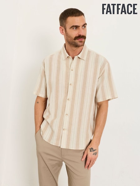 FatFace Natural Short Sleeve Relaxed Fit Linen Cotton Stripe Shirt