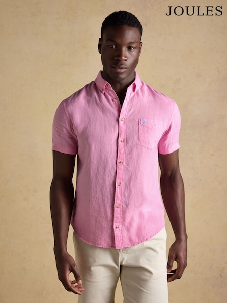 Joules Pink Pure Linen Short Sleeve Classic Fit Shirt
