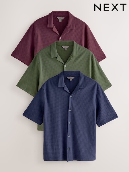 Navy/Olive Green/Rose Pink Short Sleeve Revere Collar Textured Jersey Shirts 3 Pack