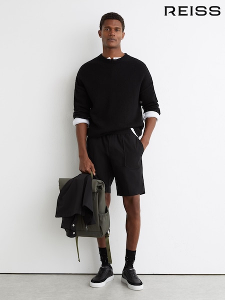 Reiss Black Alvo Textured-Wave Drawstring Shorts