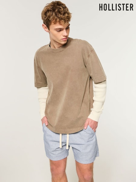Hollister Blue Linen Mid Thigh Pull-On Shorts