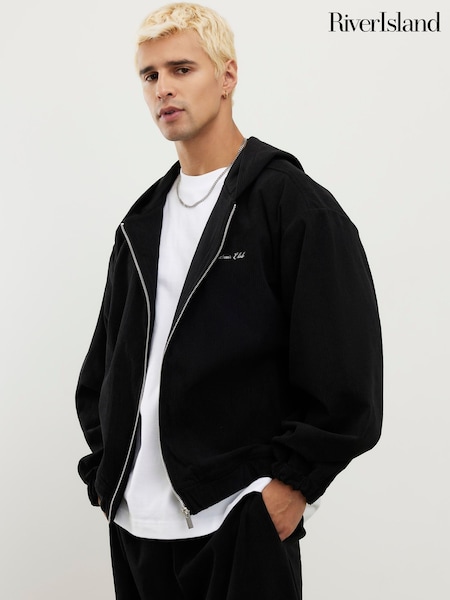 River Island Black Sanctuaire Cord Zip Through Hoodie