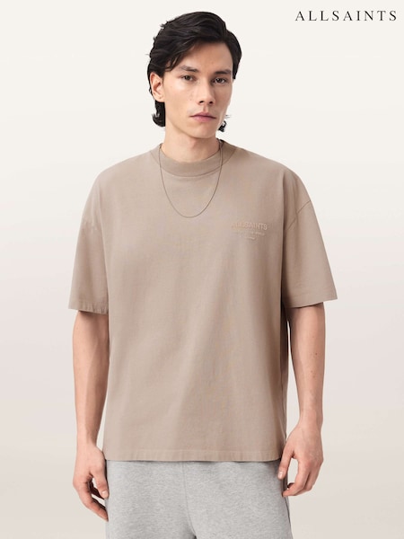 AllSaints Light Brown Xander Short Sleeve Crew Neck T-Shirt