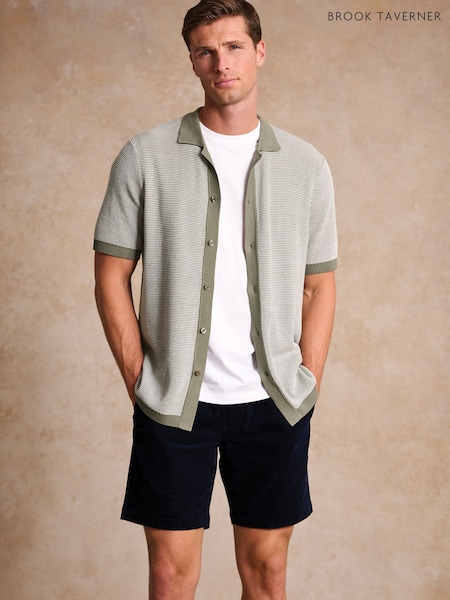 Brook Taverner Green Button Through Knitted Cotton Blend Polo Shirt
