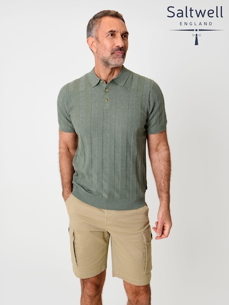 Saltwell Green Ribbed Short Sleeve Cotton Polo Shirt