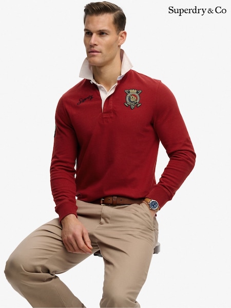 Superdry Red Double Emblem Rugby Shirt