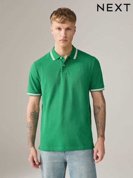 Tennis Green Short Sleeve Tipped Polo Shirt