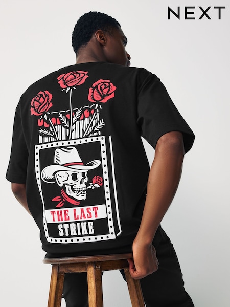 Black Skull Relaxed Fit Graphic Print Heavy Weight T-Shirt