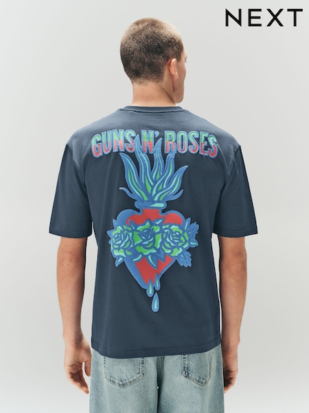 Navy Guns N' Roses Regular Fit Band Graphic Print T-Shirt
