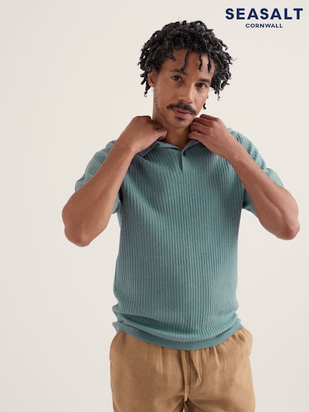 Seasalt Cornwall Teal Blue Koeswik Knitted Polo Shirt
