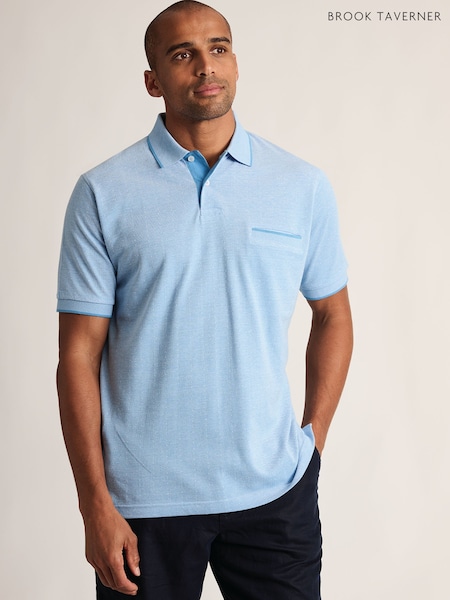Brook Taverner Blue Textured Spot Cotton Polo Shirt