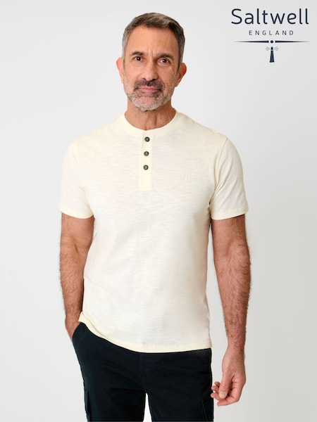 Saltwell Ecru Peached Cotton Grandad T-Shirt