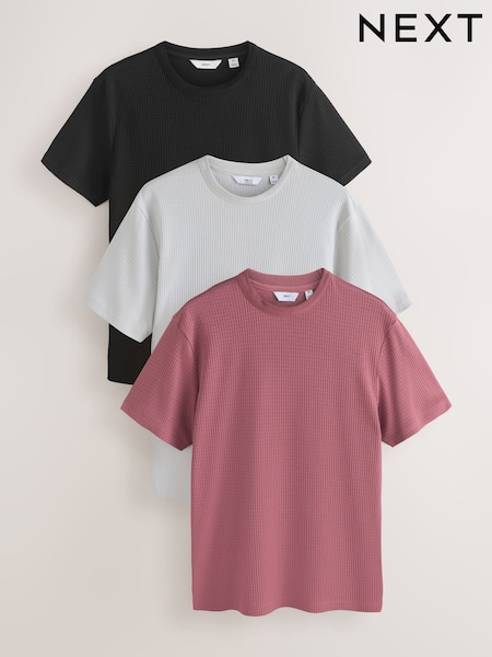 Pink/Grey/Black 3 Pack N.Premium Short Sleeve Textured T-Shirt