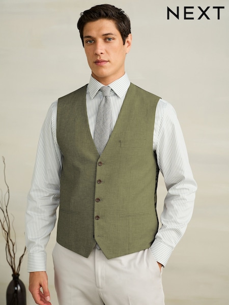 Green Textured Linen Blend Waistcoat
