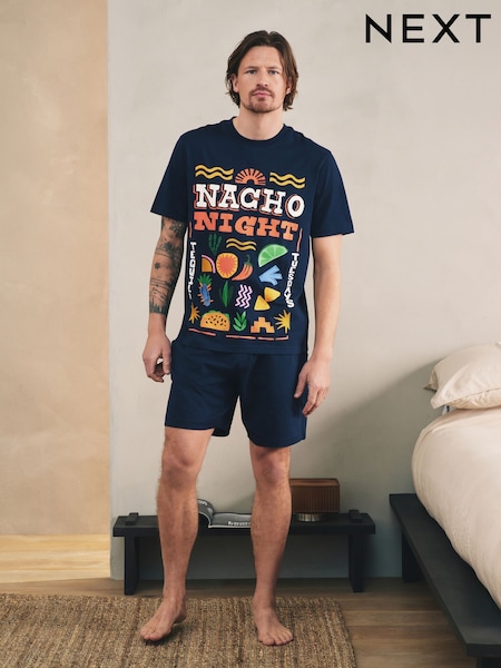 Black Graphic Short Sleeve Jersey Pyjamas Set