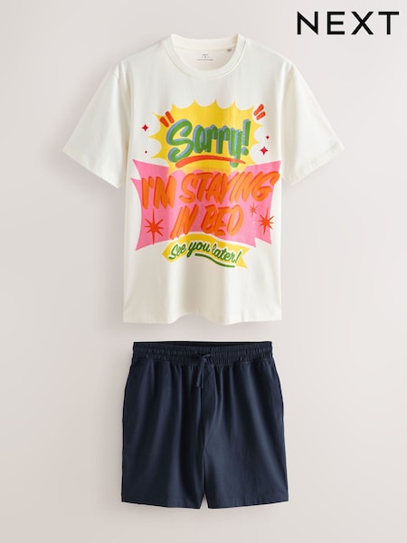 Blue Graphic Short Sleeve Jersey Pyjamas Set