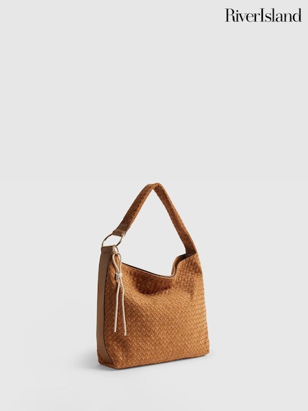 River Island Brown Faux Suede Woven Slouch Shoulder Bag