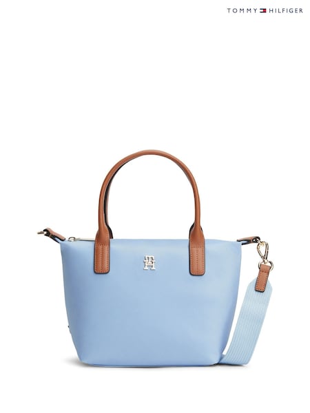 Tommy Hilfiger Blue Canvas Beach Tote Bag With Pouch