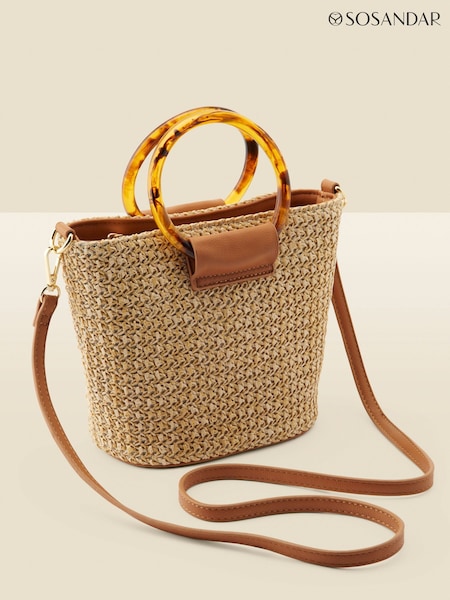 Sosandar Natural Raffia Tortoiseshell Hoop Bag With Cross Body Strap