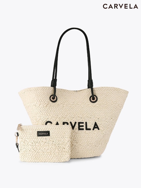 Sosandar White Raffia Small Tote Bag With Cross-Body Strap