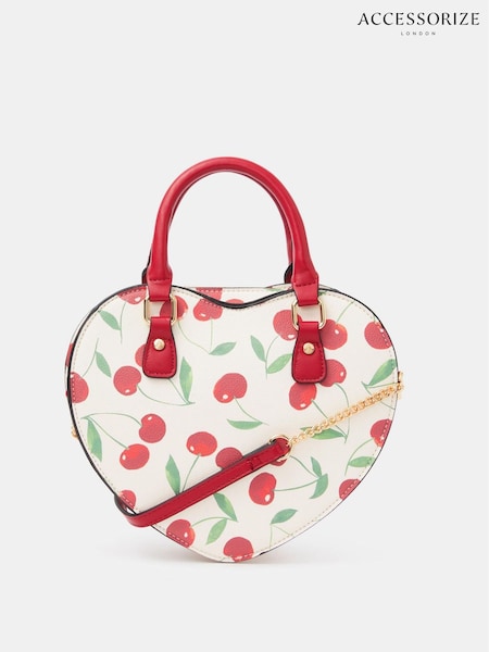 Accessorize Cream Cherry Print Heart Cross-Body Bag