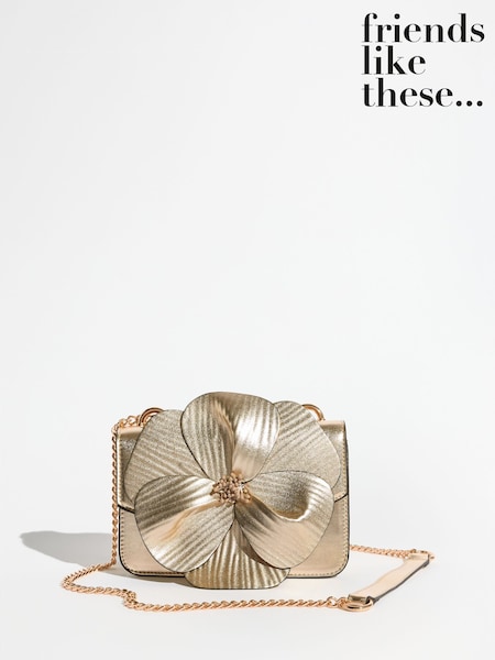 Friends Like These Gold 3D Floral Chain Shoulder Bag