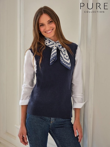 Pure Collection Blue Ultrafine Cashmere Lightweight Fringed Scarf