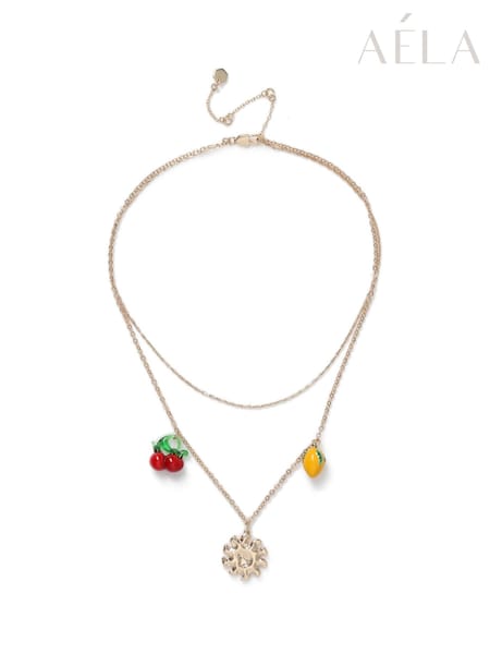 Aela Gold Tone Multirow Tassel Bead Necklace