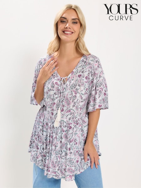 White 100% Cotton Prairie Style Long Sleeve Blouse with Adjustable Tie