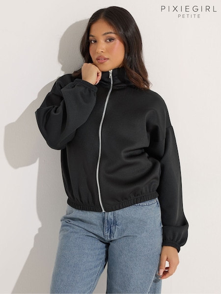 PixieGirl Petite Black Scuba Funnel Neck Zip Jacket