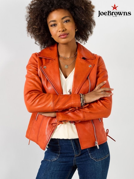 Joe Browns Orange Louisa Leather Collared Biker Jacket