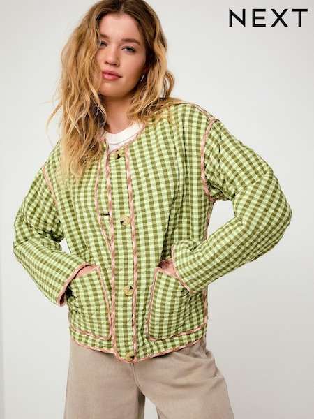 Floral Gingham Print Quilted Reversible Printed Jacket