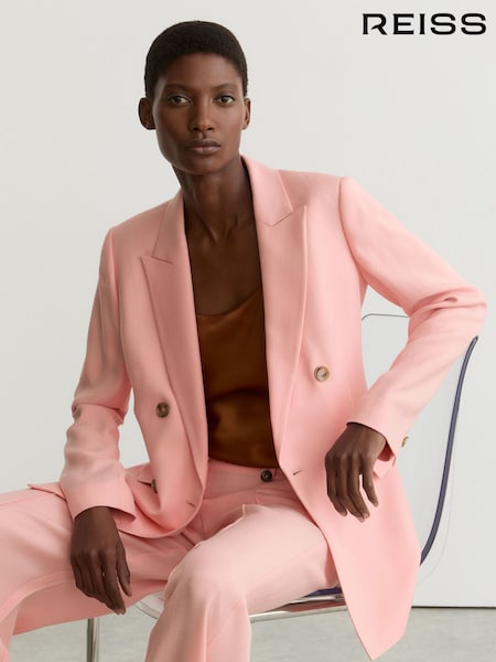 Reiss Pink Magda Double-Breasted Peak-Lapel Suit Jacket