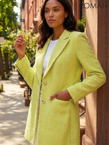 Roman Green Longline Boucle Textured Jacket