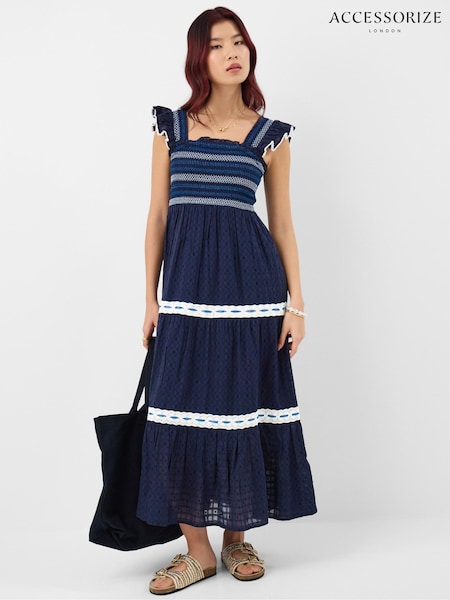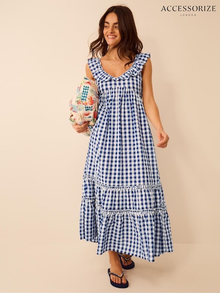 Accessorize Blue Gingham Print Ruffle Midi Dress