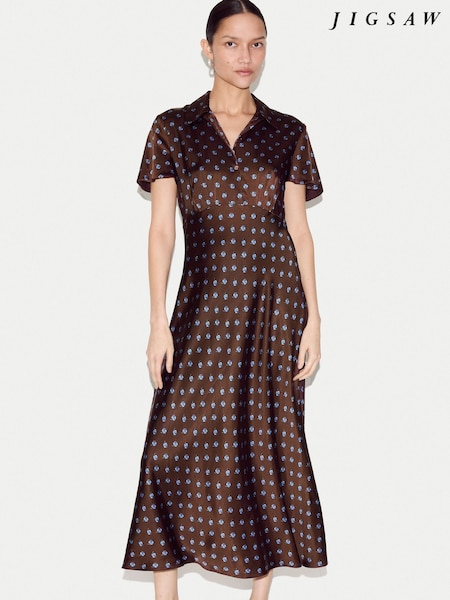 Jigsaw Brown Mini Geo Rose Bias Dress
