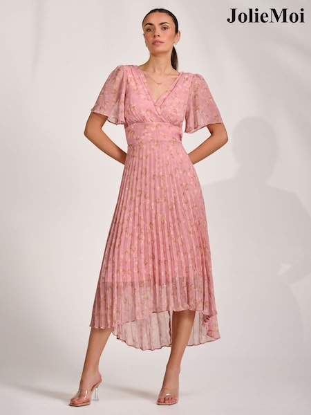 Jolie Moi Pink Floral Pleated Dip Hem Maxi Dress