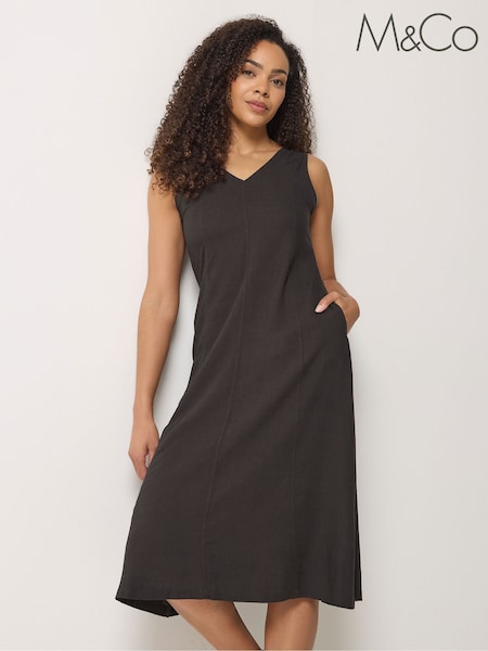 M&Co Brown V-Neck Fit & Flare Linen Blend Dress