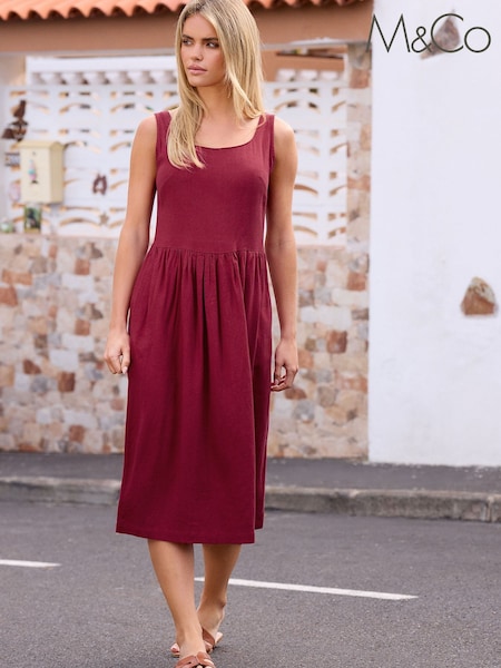 M&Co Purple Petite Fit & Flare Linen Blend Dress
