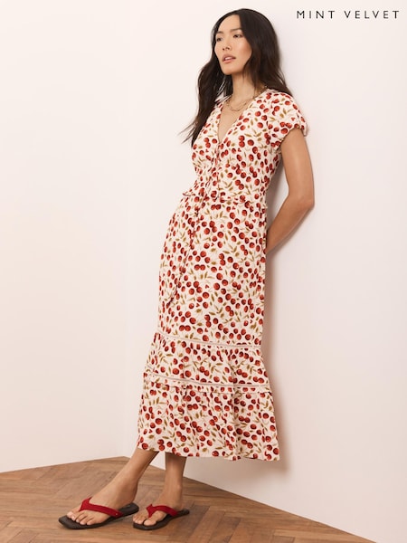 Mint Velvet Red Floral Print Tulle Midi Dress
