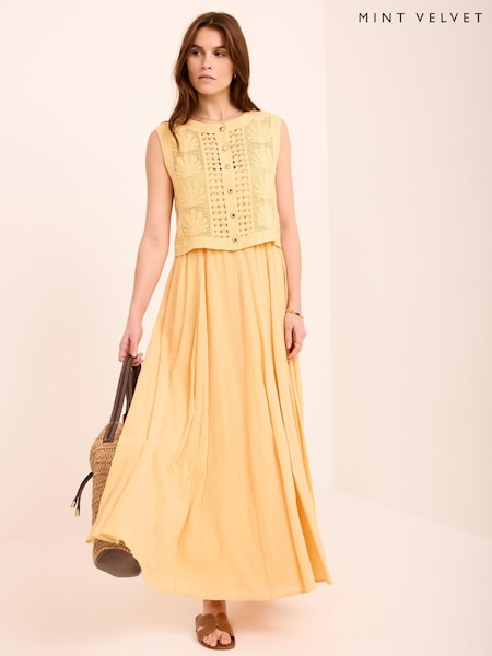 Mint Velvet Yellow Cotton Scallop Trim Maxi Dress