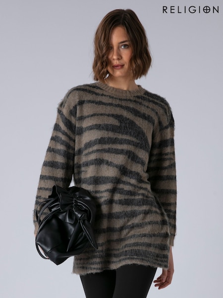 Religion Grey Maya Jumper Dress In Abstract Stripe Jaquard