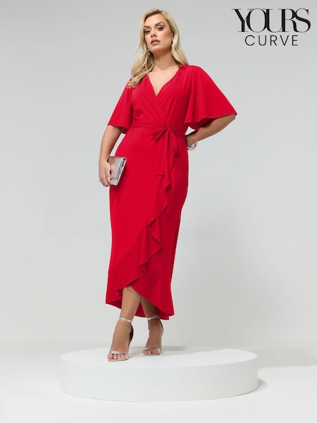 Yours Curve Red London Metallic Pleated Wrap Dress