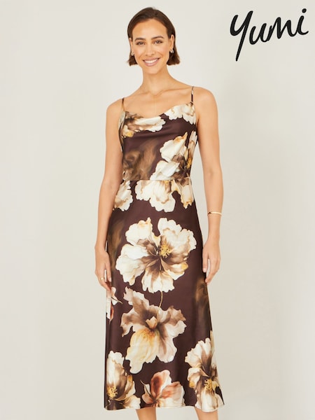 Yumi Brown Leopard Print Pleated Button Through Midi Dress