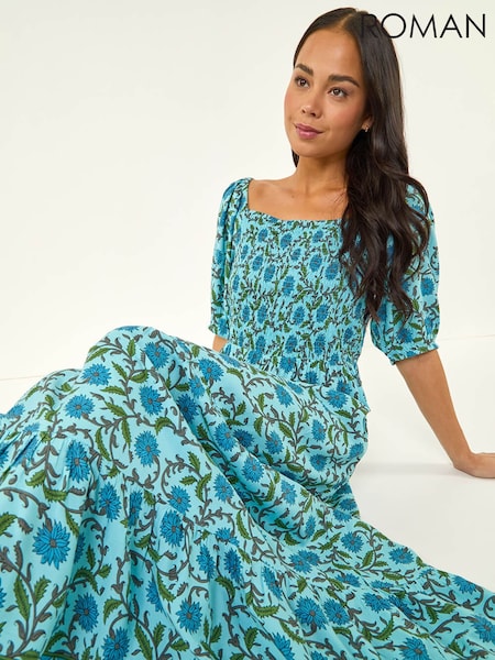 Jolie Moi Blue Wrapped Bodice Jersey Maxi Dress